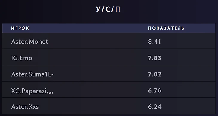Кроме того, тройка Aster входит в топ-5 по KDA: