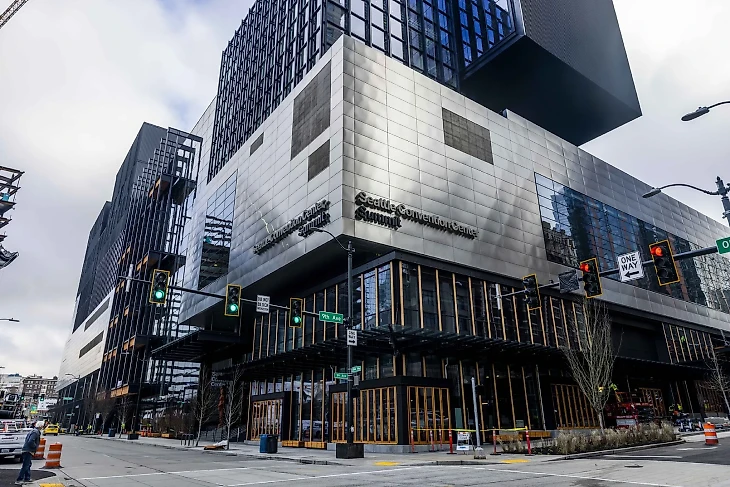 Место проведения плей-офф Инта – здание Summit конференц-центра Сиэтла. Оно совсем новое, открылось в январе этого года. Его строительство сильно затянулось – помешали и ковид, и плохо рассчитанный бюджет. В итоге строительство обошлось почти в $2 миллиарда, такое число называет Seattle Times. И вот что получилось: