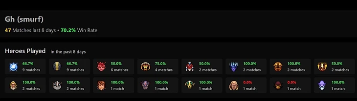 ★ Yuma (которому сейчас 22) – новый керри-игрок Nigma с огромным пулом героев, возникший на радарах в экс-команде Хакоды – D2 (D1) Hustlers, которых недавно подписала Luna Galaxy. Yuma даже стал лучшим на BetBoom Dacha по пулу, cыграв на турнире за 17 карт на 11 разных героях. Посмотрите на каком количестве героев он он играет прямо сейчас в матчмейкинге: