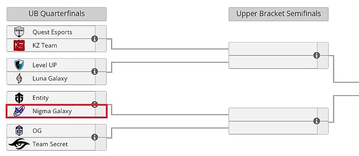 Встреча с Quest произойдет только в финале верхней сетки. И, так как слота на TI у Западной Европы два, победитель гарантированно получает слот, а второй слот достанется победителю финала нижней сетки. Любая из команд там Nigma будет по зубам.