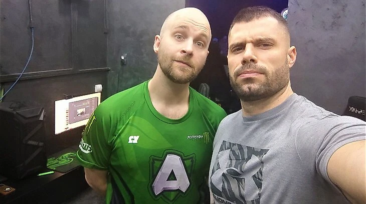 Тренер команды Дахака – олд из первой Доты и профессиональный фитнес-коуч! Никите он точно по душе