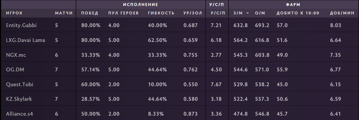 По KDA Габби опередил только Tobi, который теперь тоже неплохо смотрится за Quest. Такая перезагрузка в итоге пошла на пользу всем – и Entity, и Tobi. Да и Quest нужен был именно такой человек, как Тобиас – работяга, который сыграет в подыгрыше TA2000 и Нубу