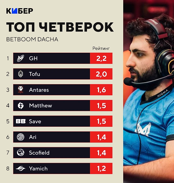 • Gpk и Ramzes провалились – последнее и предпоследнее место на своих ролях. А вот у саппортов в обеих командах все хорошо: Antares – третий, Solo и Torontotokyo в середине списка.