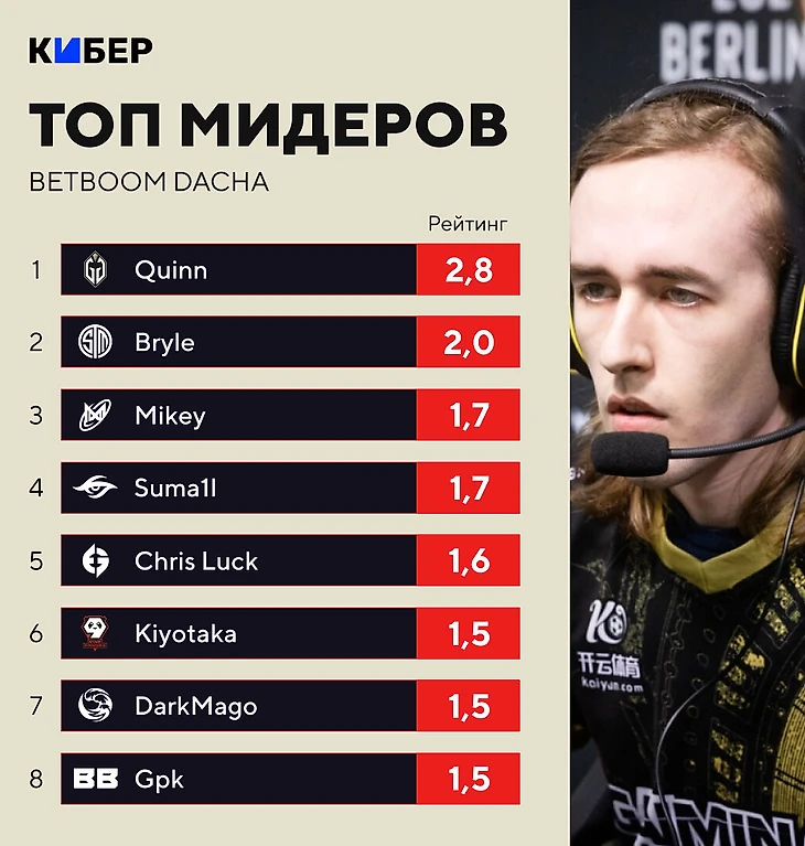 • Второе место TSM было неожиданным, особенно учитывая низкий рейтинг игроков: Timado – шестой керри, Kasane на четвертом месте среди оффлейнеров, лишь Bryle и Whitemon заняли вторые места на своих ролях. Выше только игроки Gaimin Gladiators.