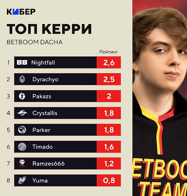 Закончился лан-турнир в Ереване – на BetBoom Dacha приехали 8 топ-команд: и Gaimin Gladiators, и BetBoom Team, и 9Pandas. Уже через месяц начнется The International 2023 – самое время узнать, в какой форме игроки. Мы подсчитали их индивидуальный рейтинг.
