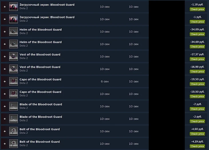 Полторы недели назад сет Bloodroot Guard по частям стоил 78 рублей 37 копеек: