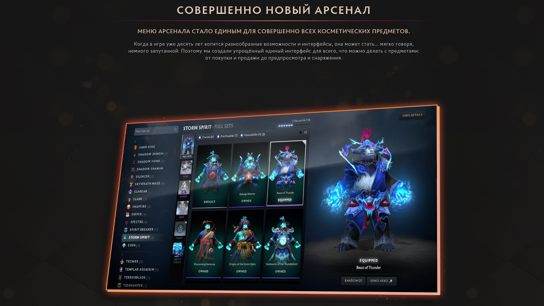 31 августа в Доте вышло летнее обновление клиента. «Мы полностью разобрали арсенал и перестроили его, чтобы вам было проще делать со своими аксессуарами все что душе угодно», – писала Valve в тексте обновления. И да, действительно, это самое крупное изменения инвентаря с Dota Reborn.