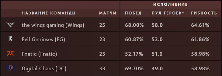Сейчас это воспринимается скорее как погрешность, чем какие-то важные вещи. Один из главных примеров, что в этой мете могло работать абсолютно все, – Wings. Команда взяла за турнир 58 героев, и в их руках все они работали шикарно. И дело не в том, что Wings были настолько сильны. У EG было взято 52 героя, у Fnatic – 51, а у DC – 49. Все это команды из топ-4 турнира.