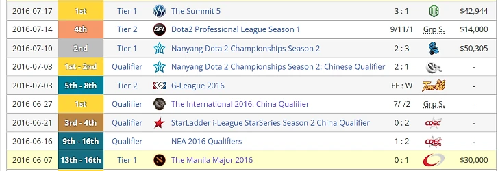 • первое место на Nanyang Dota 2 Championship;