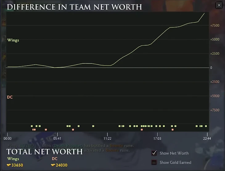 DC провела парочку удачных драк, забрала Рошана, вломилась на базу Wings и закончила игру уже на 34-й минуте. Слишком уж легко.
