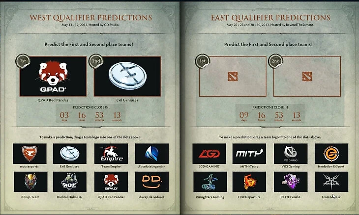 В Компендиуме можно было сделать предсказания победителей квалификаций и делать прогнозы: