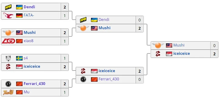 Игроков тоже можно было выбирать прямо внутри Компендиума. В итоге турнир 1x1 выглядел так: