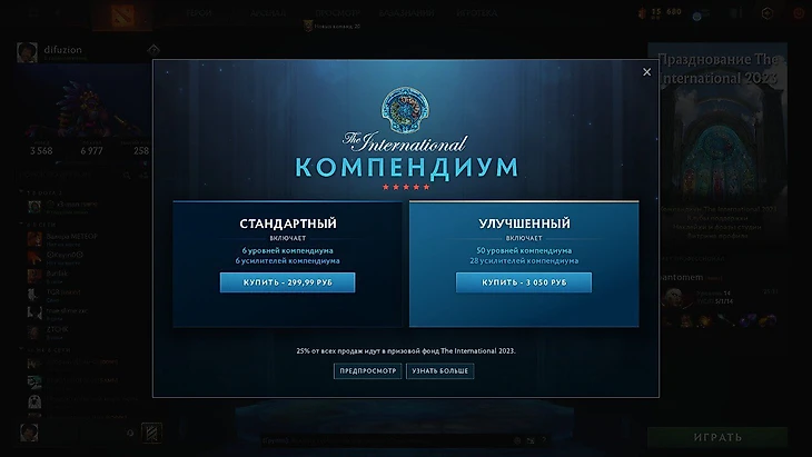 На старте вы можете купить два вида Компендиума: стандартный и улучшенный. Различия в начальном уровне (стандарт – 6, улучшенный – 50) и расходниках (капсулы с наклейками, усилители).