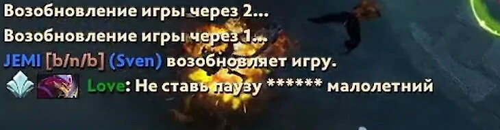 «Я вообще ноль слов говорил этому ###### [дураку]. Он заснайпил меня на смурфе, контрпикнул, дропает шмотки. Он дропал Манго, типа смешно ему, типа я фрукты ем. Дропает мне Манго, денаит четыре крипа, потому что у героя 400 урона с тотема, и паузу ставит! Ему смешно, понимаешь? И в чате потом мне пишет на Твиче, какой он [крутой], что он меня заснайпил, понимаешь? Типает меня в официалке и High Five нажимает.