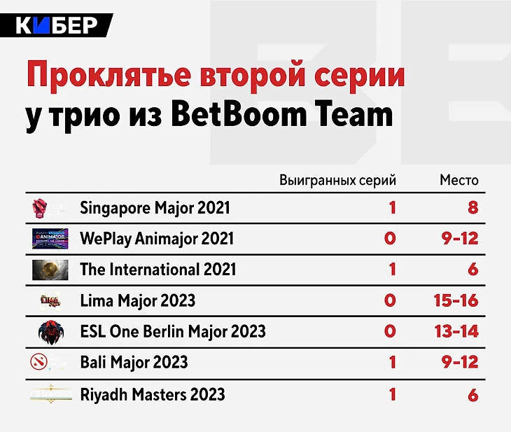 Он был прав. На мейджоре в Лиме BetBoom не вышла даже из группы! Команда потеряла игру, проиграла Shopify Rebellion, Entity и HellRaisers с заменой (что тогда было полным шоком!), а выиграла только у 322-команды Knights. Помните такую?
