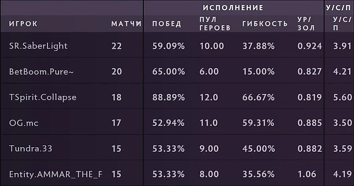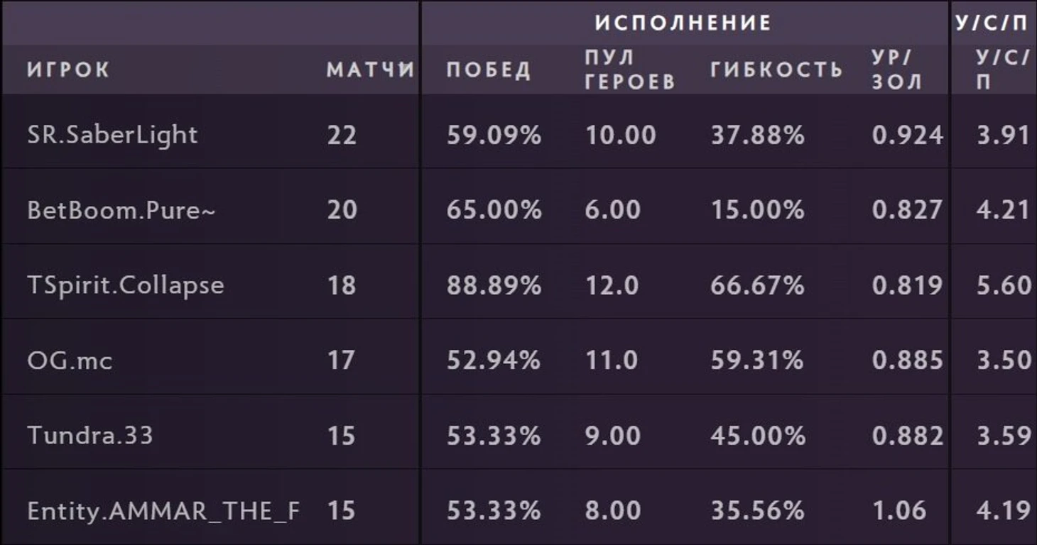 А если взглянуть на статистику на ESL One Berlin Major 2023 – то там мы увидим топового оффлейнера с шикарным пулом героев и приличным KDA.