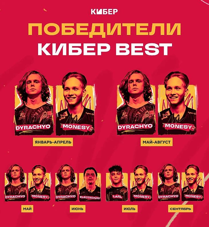 Напомним, как устроен Кибер Best: каждый месяц вы выбираете лучшего игрока в Доте и CS, каждые четыре месяца подводим промежуточные итоги в 11 номинациях. А итоги за весь прошедший год мы подведем на большом ивенте. Ждите, мы готовим много интересного!