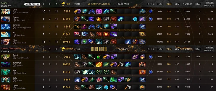 Здесь - краткий дайджест первого игрового дня, только самое интересное! Что по командам 1. Spirit уверенно начала группу и закончила игровой день с 6-ю победами, гарантировав себе первое место в группе А. 2. У BetBoom все так себе: победила Thunder, но проиграла Liquid. 2-2! 3. 9Pandas после провального старта выровнялись и идут 3-3. 4. LGD и Tundra доминируют в группах, Gladiators пока идут 3-3. Что по мете 1. Очень сильным смотрится Баратрум - баффы в последних патчах сказываются! В 13 матчах взяли, победил в 70%. 2. Появилась Муэрта, которая очень хороша на драфте. Можно посадить и на керри, и на четверку - Аганим лютый. 3. Панго, Даззл и Трент никуда не ушли - до сих пор надежные герои. 4. Венга - один из лучших саппортов меты. Берем быстрый Солар и рашим Аганим, можно впихнуть Барабаны. Ничего сложного!