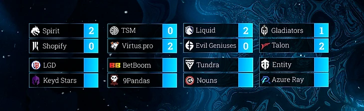 Тундра и Спирит в огне, а у Ликвид и Шопифай трудности. Результаты второй линейки матчей