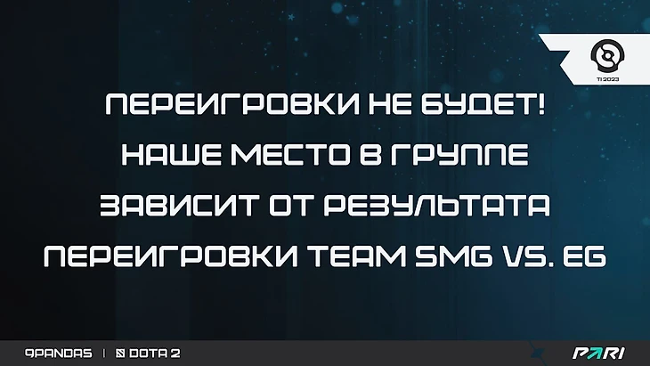 А вот для 9Pandas это поражение на 1-й карте вышло боком: из-за него при равенстве показателей с Entity место в группе зависело от переигровок EG с SMG. О них Valve не сказала ни слова до последнего момента, оставив сообщество в полном неведении.