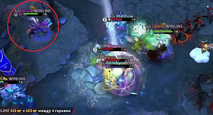 27-я минута более-менее равной катки. У Gladiators не слишком большое преимущество, но у EG Фантомка, которой, как известно, плевать на то, сколько у вас денег. Режет всех. Начинается очередная драка, и Антон ставит не очень удачное Хроно – на одного только Магнуса. А после – сразу теряет Аегис. И тут включается Ace: сначала продлил жизнь Seleri на Аппарате, а потом несколько раз реанимировал Дурачье.