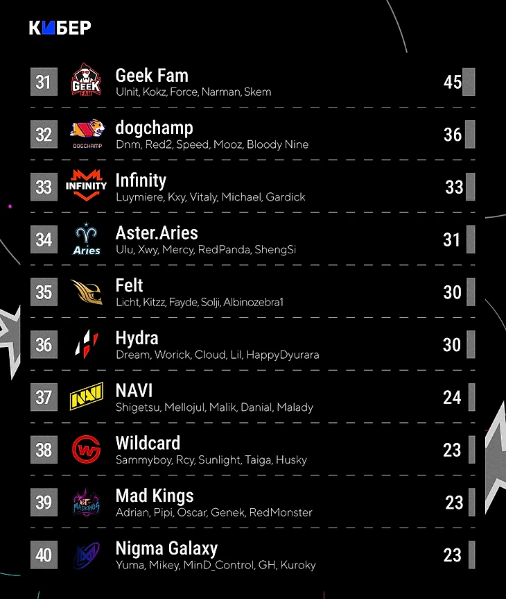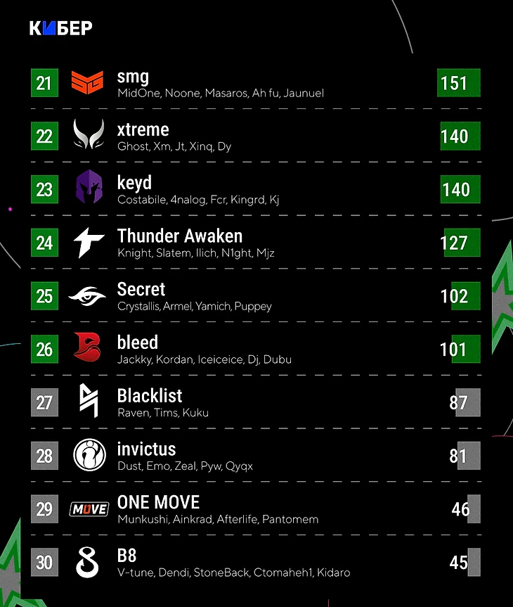 ● Следующий рейтинг выпустим после ESL One Kuala Lumpur в середине декабря.
