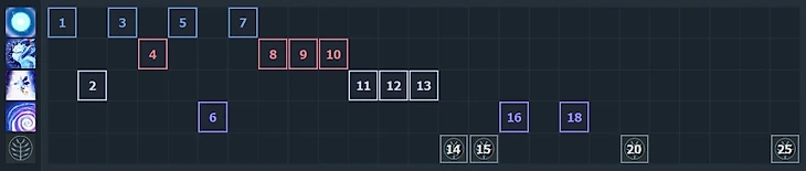 Раскачка у Ларла всегда одинаковая: максит Орбу, затем сначала докачивает способности, и только на 14-м и 15-м берет таланты. Ультимейт на 12-м, кстати, тоже не качает – там скейлится только урон.
