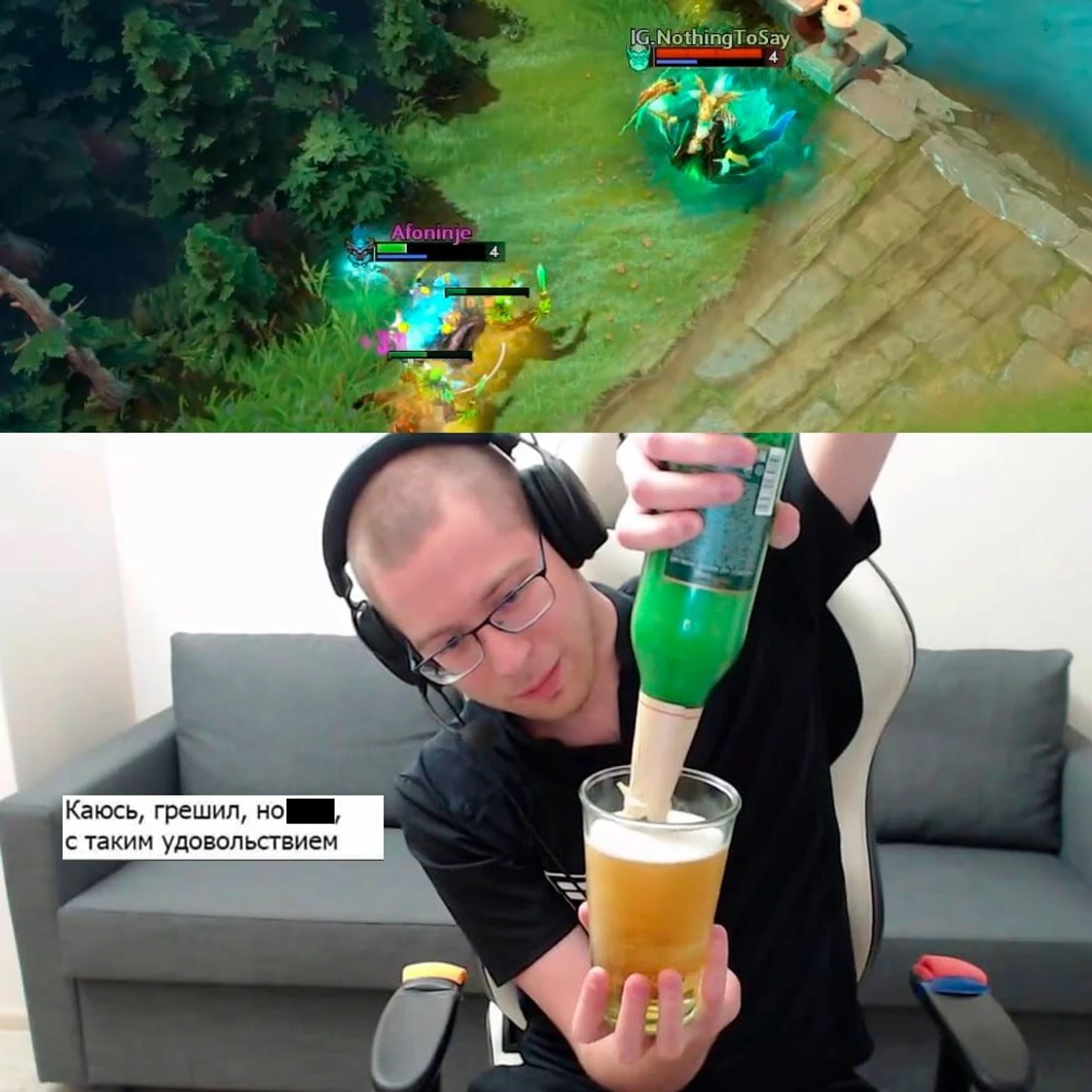 Самое плохое, что на последней карте турнира Афонин и Кийотака свапнулись ролями, чем показали, что покинуть турнир достойно не готовы. И просто устроили клоунаду: NTS на Некре удалил Афоню на Баре, а G2.IG – 9Pandas с карты. Все было настолько плохо, что Ultimate сразу же выложил про это мем.