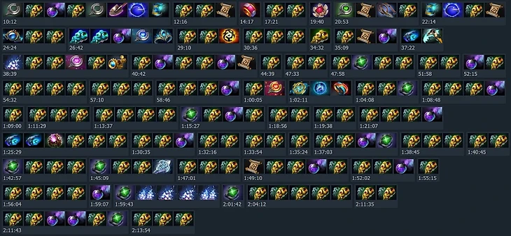 А еще у GG был и универсальный Минер, у которого к 30 уровню со всеми статами и талантами было почти 600 урона с руки. А ведь он даже не собрал ни одного предмета на урон: пока Селери на Чене фармил кучу слотов, Тофу сидел на вардах и саппорт-айтемах – просто посмотрите сколько Обсов за игру он купил!