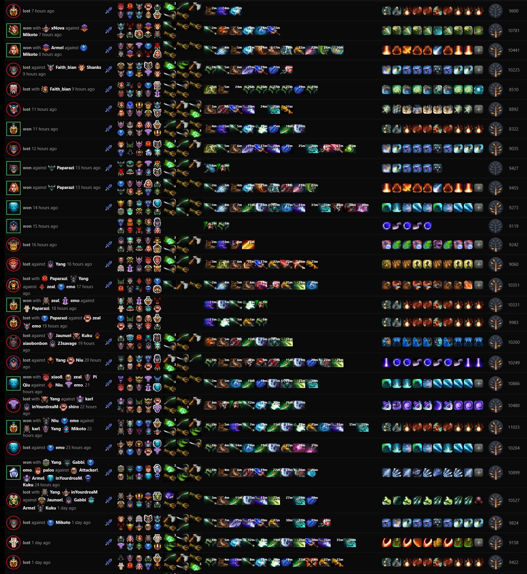 Самый частый противник за сутки из профессионалов – Mikoto. Против него Аме попадался 4 раза: трижды выиграл и однажды – проиграл.