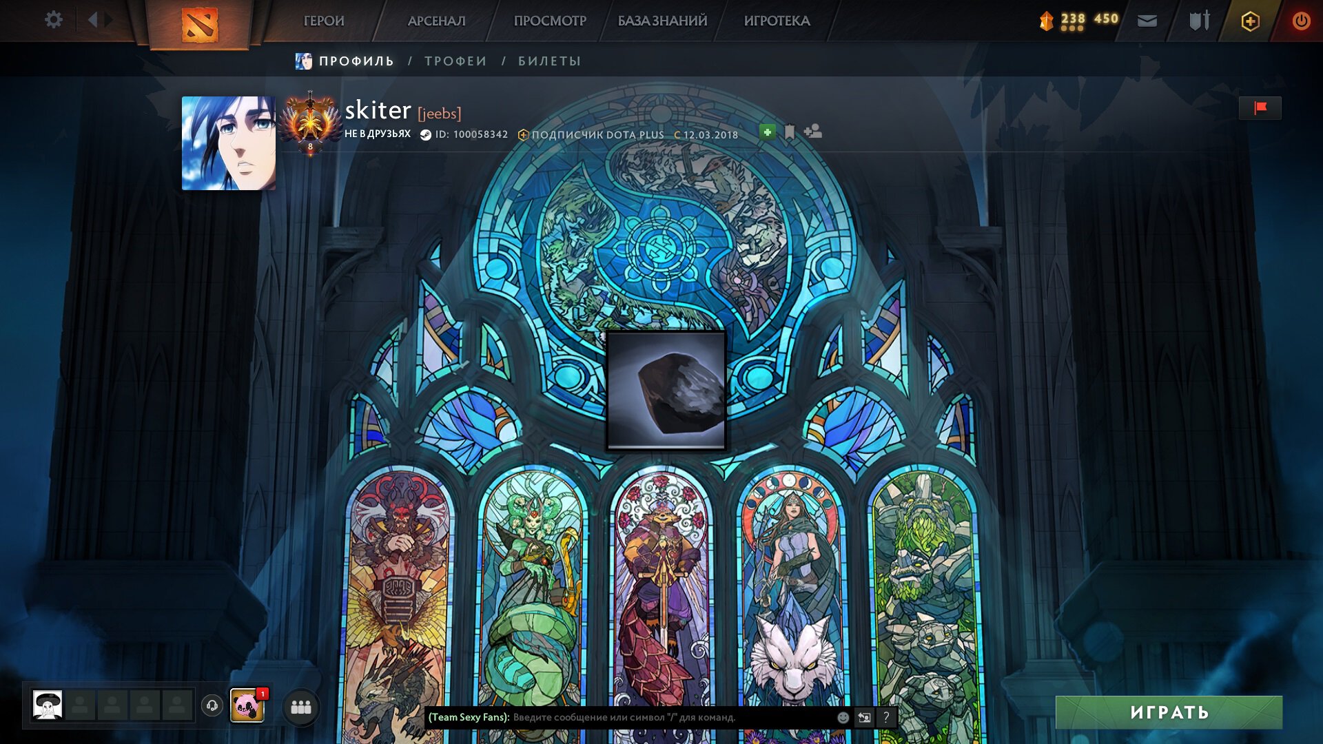 Skiter зачем-то бросил в витражи с изображением своего же победного пика на TI11 камень...