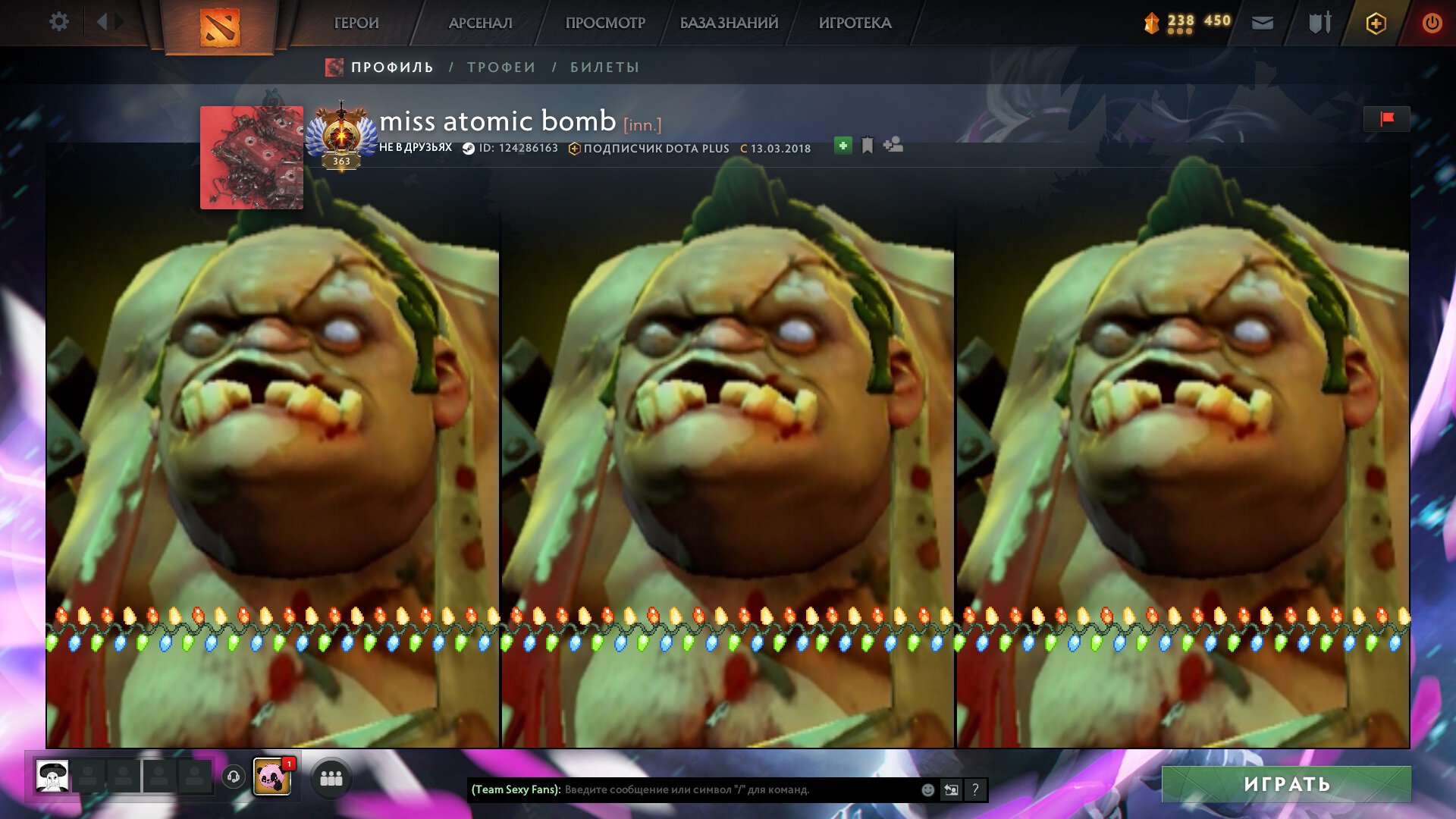Даже тренер Virtus.pro не остался в стороне от украшения профиля! В профиле у Года игроки, сам тренер и аналитик VP бегут к горе сокровищ в механических сундуках. На лице одного из игроков (по арту мне до конца неясно кто это – Нотисд или Сквадикс?) иконка Некролита, над которой сверху стошнило Пуджа.