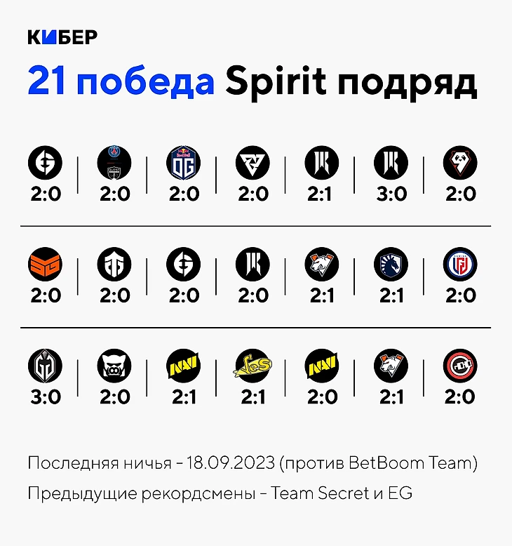 Здесь все просто: Spirit побеждает 21 серию подряд, начиная с DreamLeague S21.
