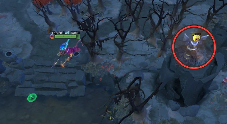 А теперь смотрим на цифры в игре. Лишь на двух картах Денис сильно проиграл по крипстату к 8-й минуте: на Пангольере против Темпларки Gpk и на Паке против Войд Спирита Xm. В обоих случаях у Ларла был проигрышный матч-ап, но разница была в около 20 добиваний – закономерный результат, учитывая, что Дениса прикрыли на драфте. Все могло быть и еще хуже, не уходи Ларл в лес.