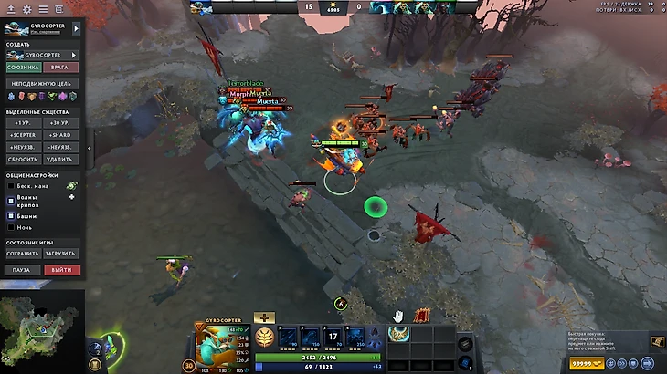 И добивает все это 75 маны за удар — очень тяжелое требование для коров-ловкачей. Некоторые герои это просто не выносят — Медуза теряет свою выживаемость, Джаггернаут теряет всю ману за один ульт с активной брошью, Сларк с шестью слотами успевает сделать всего 20 ударов, даже не используя способности. При этом любая автоатака, имеющая несколько целей, тратит по 75 маны на каждую цель, даже если при этом не использует другие эффекты. Пример: гирокоптер, сделавший 1(!) выстрел рядом с крипами: