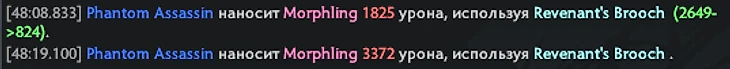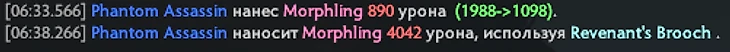 Разница между критами Phantom Assasin по Морфу с 64 брони с выключенной и включенной брошью налицо.