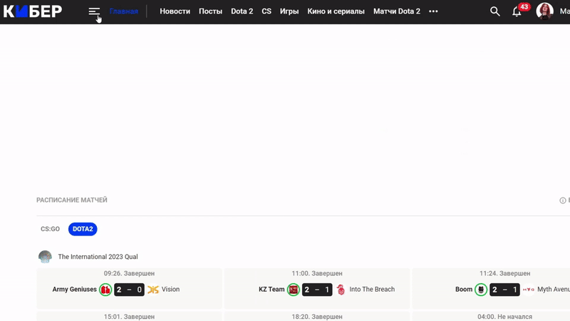 Теперь, чтобы почитать новости о Spirit или открыть календарь турниров, не нужно ничего искать по вкладкам. Все самое важное отображается справа при наведении на раздел.