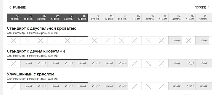 Действительно, в отеле с 4 звёздами напротив места проведения «Игр Будущего» номера доступны только с 22 числа. 21 февраля заехать не получится видимо из-за того, что вся Россия приехала смотреть турнир, но задерживаться дольше одного дня не планирует. Дело закрыто!