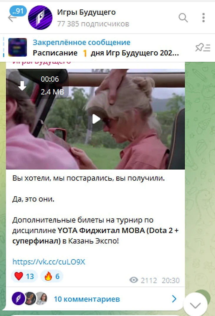 Пока я писал эту статью в официальном телеграм-канале Игр Будущего появился этот пост:
