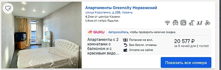 Ладно, шутка, разумеется, мы не станем заселяться у аэропорта в полутора часах езды на общественном транспорте от известных казанских достопримечательностей. Смотрим отели и апартаменты в центре города: