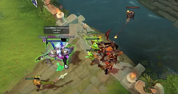Ниша распушивает пачку способностями на скорость, параллельно попадая ими по врагу, и атакует Войд Спирита, только когда его крипов намного больше вражеских. Это то, что вам нужно запомнить: никогда не играйте агрессивно, если вражеская пачка больше, чем ваша. В противном случае – нападайте. Не рискуйте и даже не думайте атаковать, если имеете даже малейший шанс умереть.