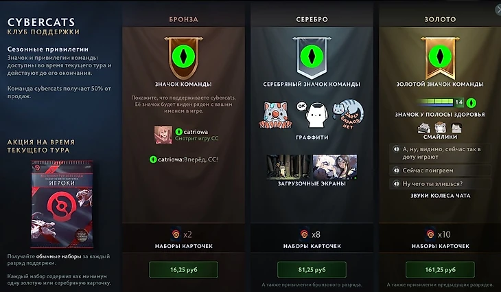 Помимо очевидных призовых за DPC любая команда могла заработать на командных бандлах. Да, получить серьезную сумму удавалось далеко не всем, но наиболее креативные организации и стаки получали существенную добавку к доходу. «Cybercats очень круто хайпанули и заработали на этом не меньше тир-1-2 коллективов, что не могло не радовать и стало примером и в какой-то степени пинком для меня лично, чтобы более плотно заниматься набором команды», – рассказывает ZverHDD.