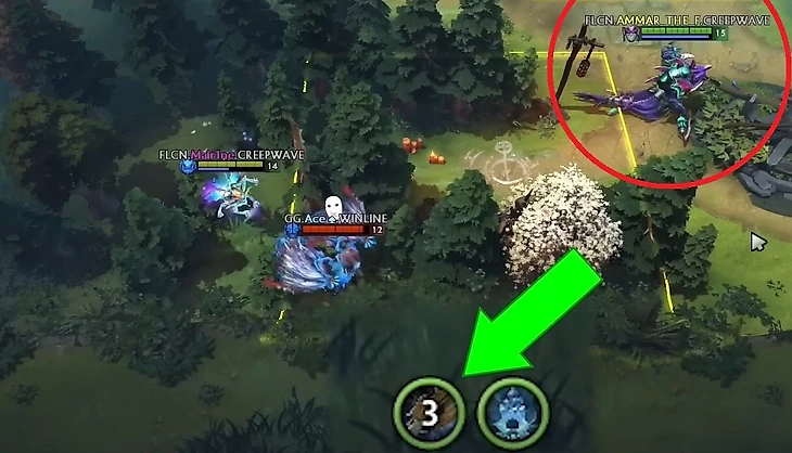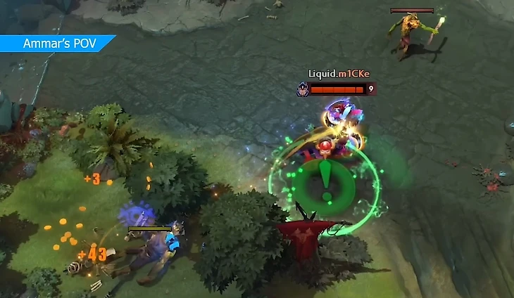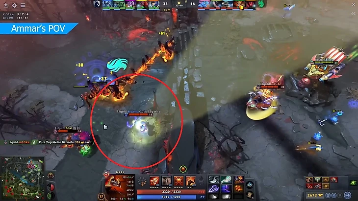 Что делает Аммара крутейшим лейнером? Его чувство тайминга. Он довел базовый навык добивания крипов до совершенства. Смотрите, как он начинает линию на Кунке немного левее, чтобы вообще не получать урона.