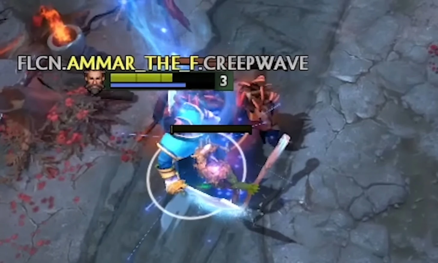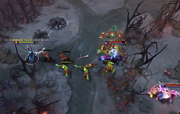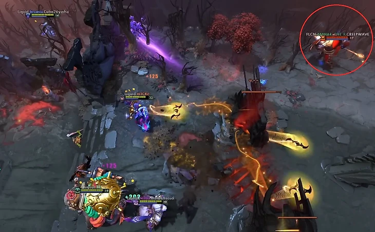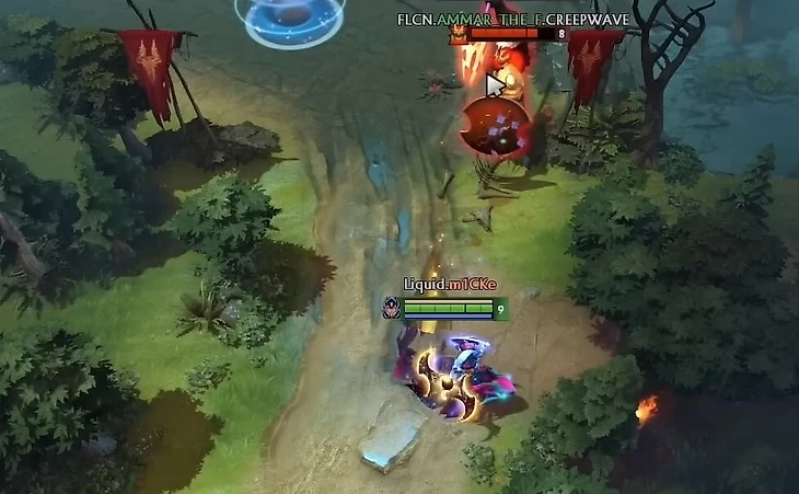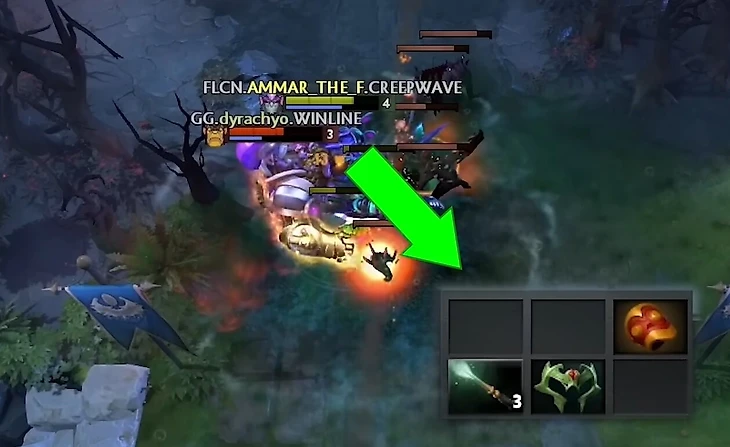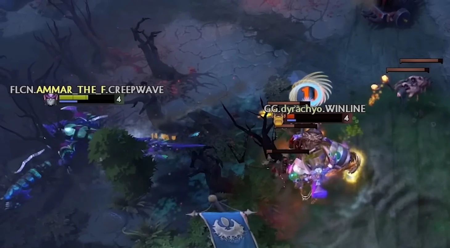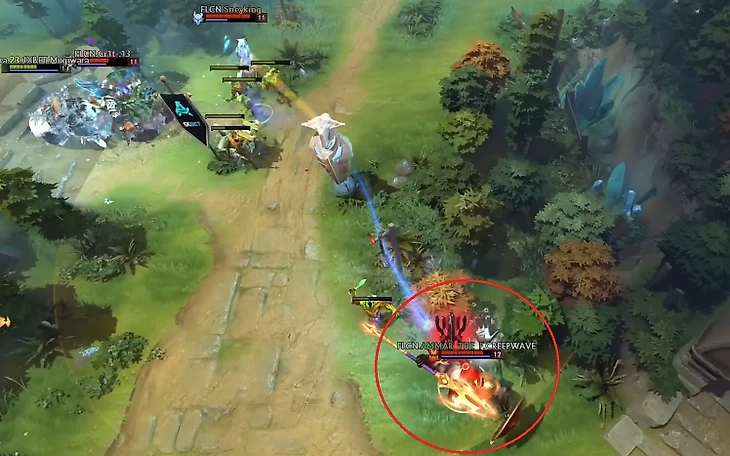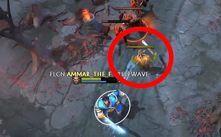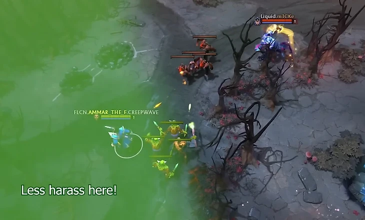 После этого Аммар всегда перетягивает пачку. Когда обычный средний игрок не видел бы в этом смысла, Аммар всегда оттягивает даже одного несчастного крипа ближе и ближе к вышке, постоянно переагривая его на себя и стараясь, чтобы крип жил подольше. Так, чтобы все последующие пачки встречались ближе к его Т1.
