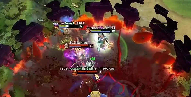 А ведь у Aurora был Аегис и игра была абсолютно равна! В результате, казалось бы, безрассудного действия Аммара Falcons поубивали всех врагов на их же базе и вот так просто выиграли игру.