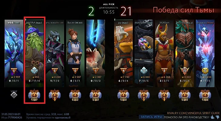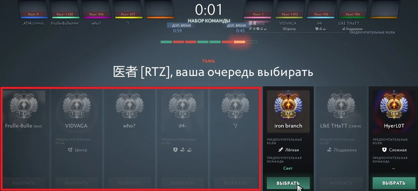 Еще один смешной момент Immortal-драфта – «пикать левых». Cмысл в том, чтобы на драфте выбрать наибольшее количество игроков слева – с более низким MMR, чтобы получить за игру больше MMR или потерять поменьше.