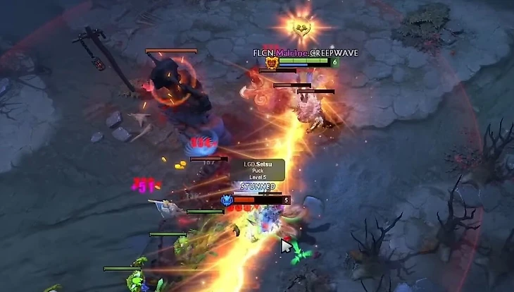 • пропушивает вражескую пачку крипов максимально быстро с помощью Firefly;