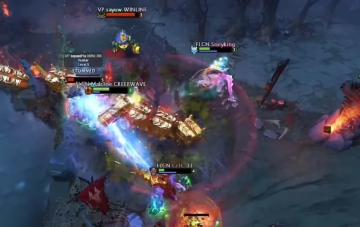 Что, в свою очередь, позволяет саппортам Falcons сместиться и наказать обнаглевшего Хускара. Так одним действием переворачивается тяжелая игра.