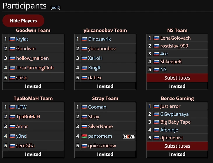 Для игроков турнир тоже ни разу не фановый. Nix обнаружил, что человек с 9200 рейтинга был зарегистрирован как с 6000 рейтинга в команде Головача и Комы (что иронично). Участники с анонса готовы мошнить (и их желание понятно), из-за чего неизбежно наступает инфляция составов.