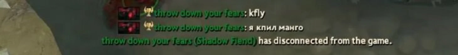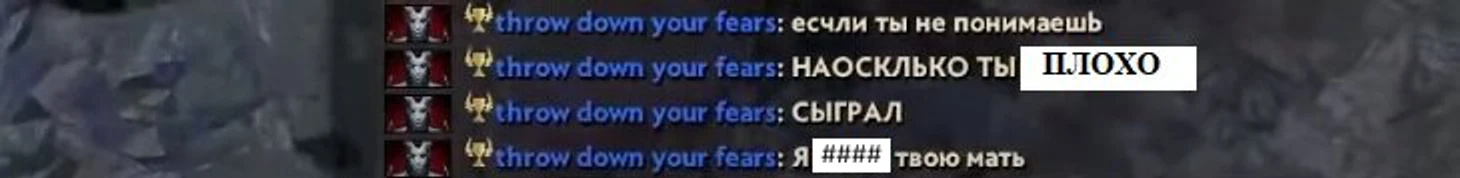 ...и ежедневными драматичными никнеймами, вроде «throw down your fears» или «depressed+tilted». Найтфолл, играя в Доту сутками, был убежден в том, что он абсолютно точно лучше всех. Токсик, флейм врагов и союзников, бесконечные паузы – все это было в его стиле. Если свои паузы для того, чтобы поиздеваться над соперником закончились, – настойчиво просил тиммейтов.